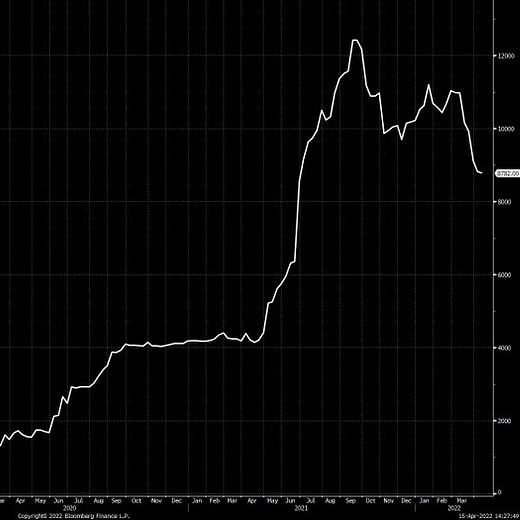 Some of the leading indicators of inflation are now starting to go the opposite direction, lending credence to the view that we have already hit “peak inflation.” Via Joe Weisenthal: